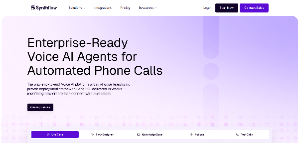 Synthflow AI takes a different approach by focusing on no-code voice automation. Instead of requiring developers to design conversation flows from scratch, the platform provides templates and visual builders for creating voice agents.