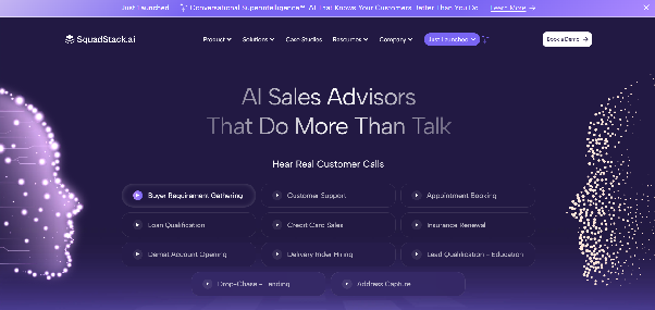 | SquadStack | Hybrid AI + human sales calling | Lead qualification with human fallback agents | Yes | Enterprise pricing (contract based) |