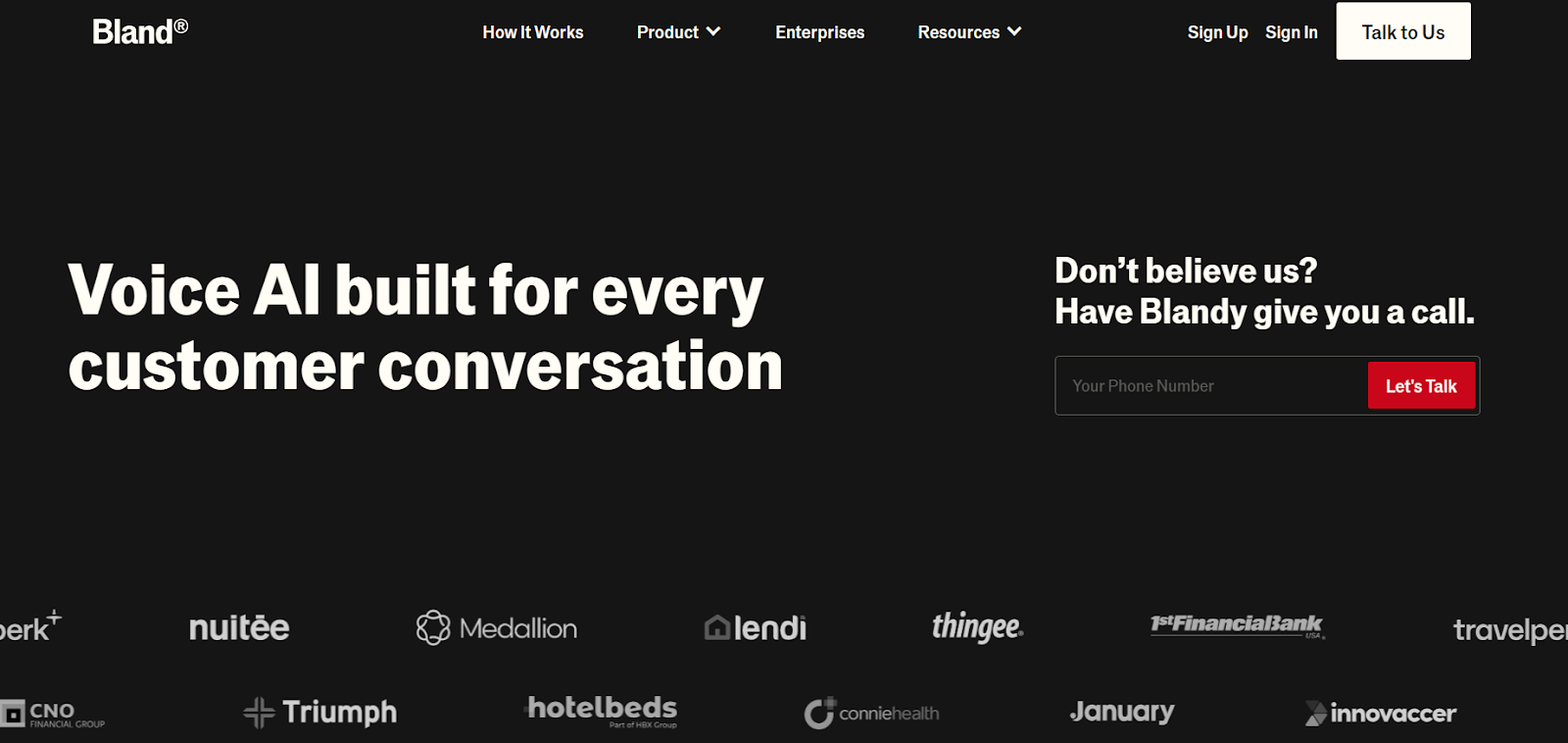 Who is it for? Bland AI is trusted for its scalability, making it ideal for organisations that handle high call volumes like healthcare, logistics, and fintech. It's primarily designed for enterprises and developer-heavy teams that want extreme flexibility and deep integration.