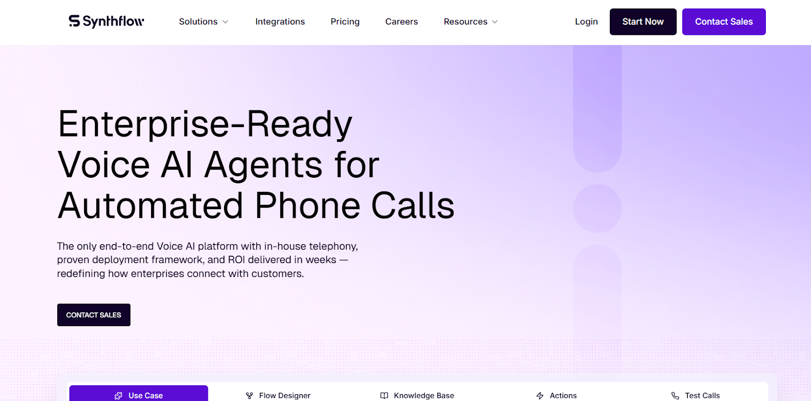 Synthflow integrates with Hubspot, Salesforce, Stripe, Cal.com, GoHighLevel, Zapier, Make, Bubble, Elevenlabs and Twilio.