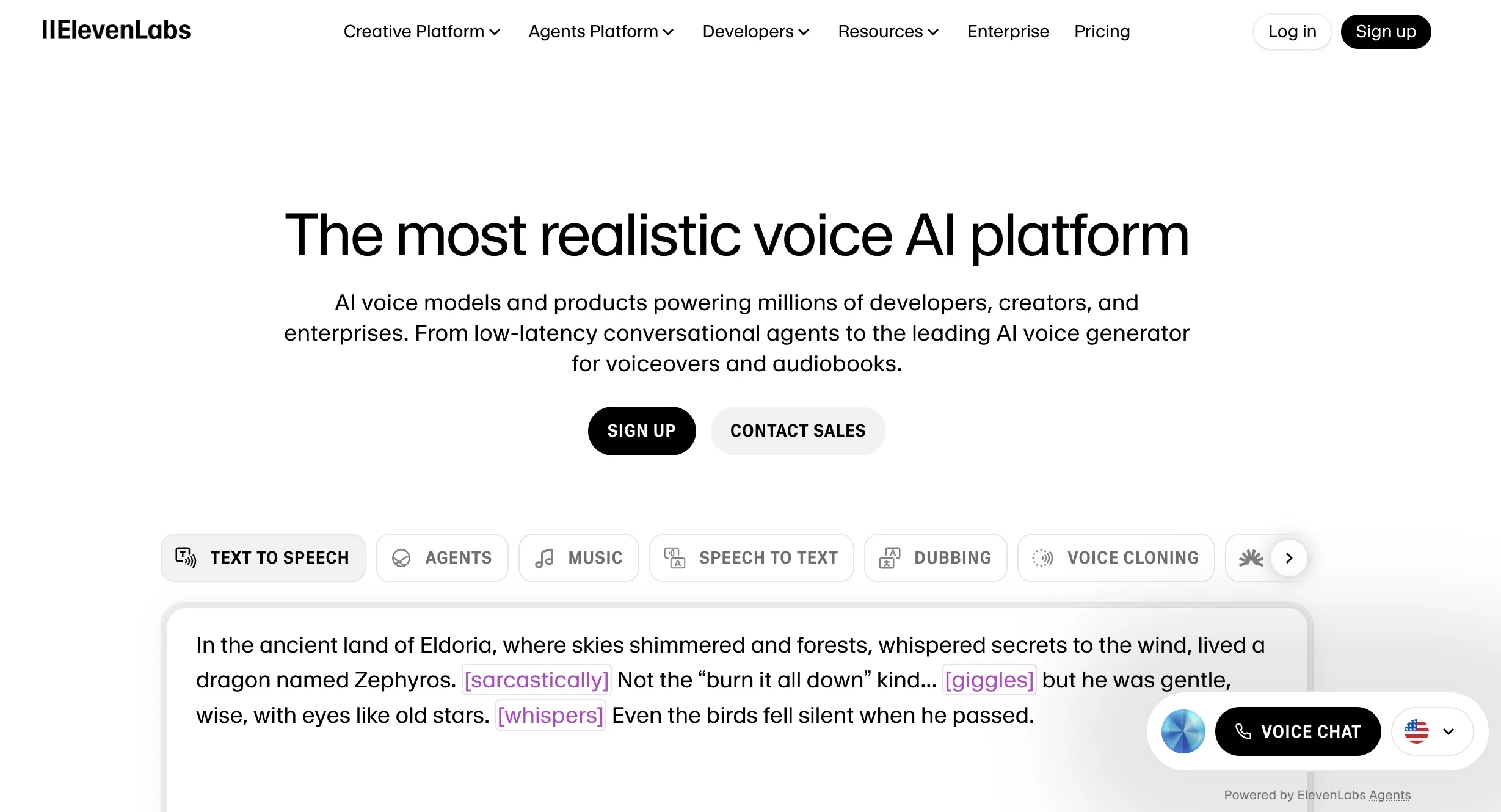 ElevenLabs is best known for its world-class text-to-speech and voice cloning tech, and more recently it’s expanded into conversational AI agents. Their platform can take user input (voice or text), ground it in your data, and produce natural spoken replies.