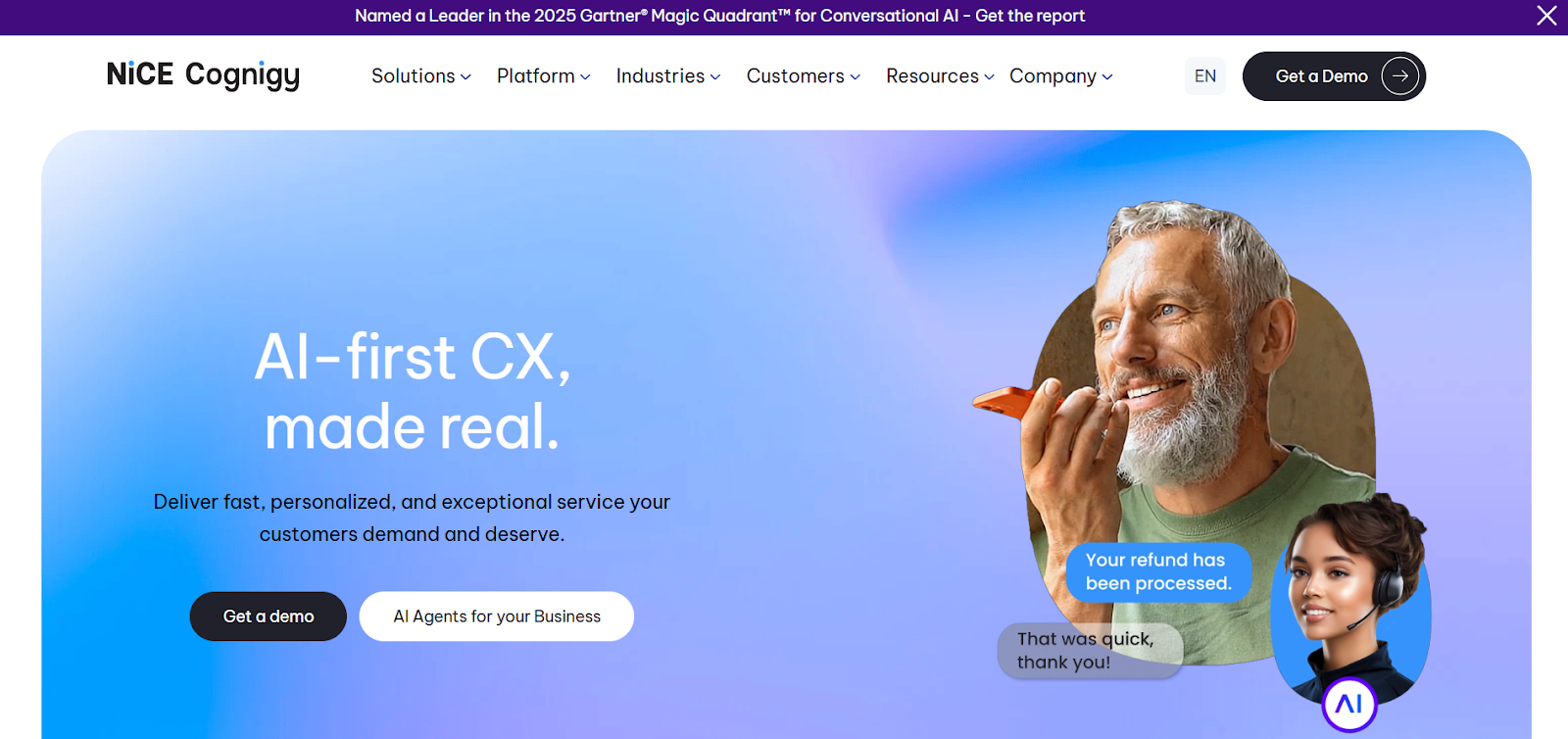 NICE CXone is an enterprise contact center platform that includes voice AI as part of a comprehensive CX and workforce management suite. It is built for large organizations that need governance, compliance, and analytics across all customer touchpoints. Voice automation here is designed to support large-scale operations rather than act as a standalone AI agent.