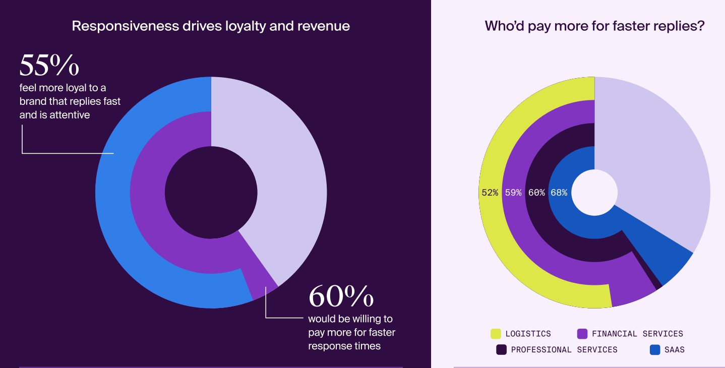 Responsiveness is one of the top factors that drives loyalty and revenue; the majority of customers across the industry would pay extra for faster replies.