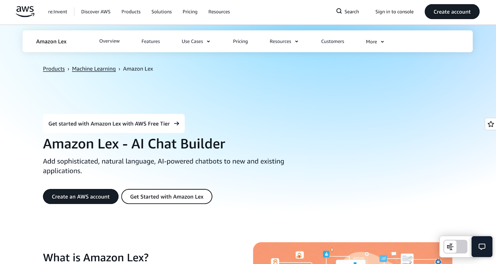 Teams use it to add chat and voice bots into apps, websites, and Amazon Connect contact centers, while keeping everything inside the AWS ecosystem.