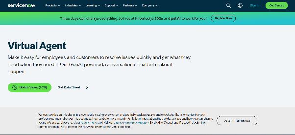 ServiceNow Virtual Agent and the broader ServiceNow AI portfolio embed conversational AI into enterprise workflows by integrating directly with ServiceNow’s core products (ITSM, CSM, HRSD). It is not sold as a standalone chatbot; rather, it’s an extension of complex workflow and service management automation — enabling AI-driven self-service, task automation, and decision support across departments.