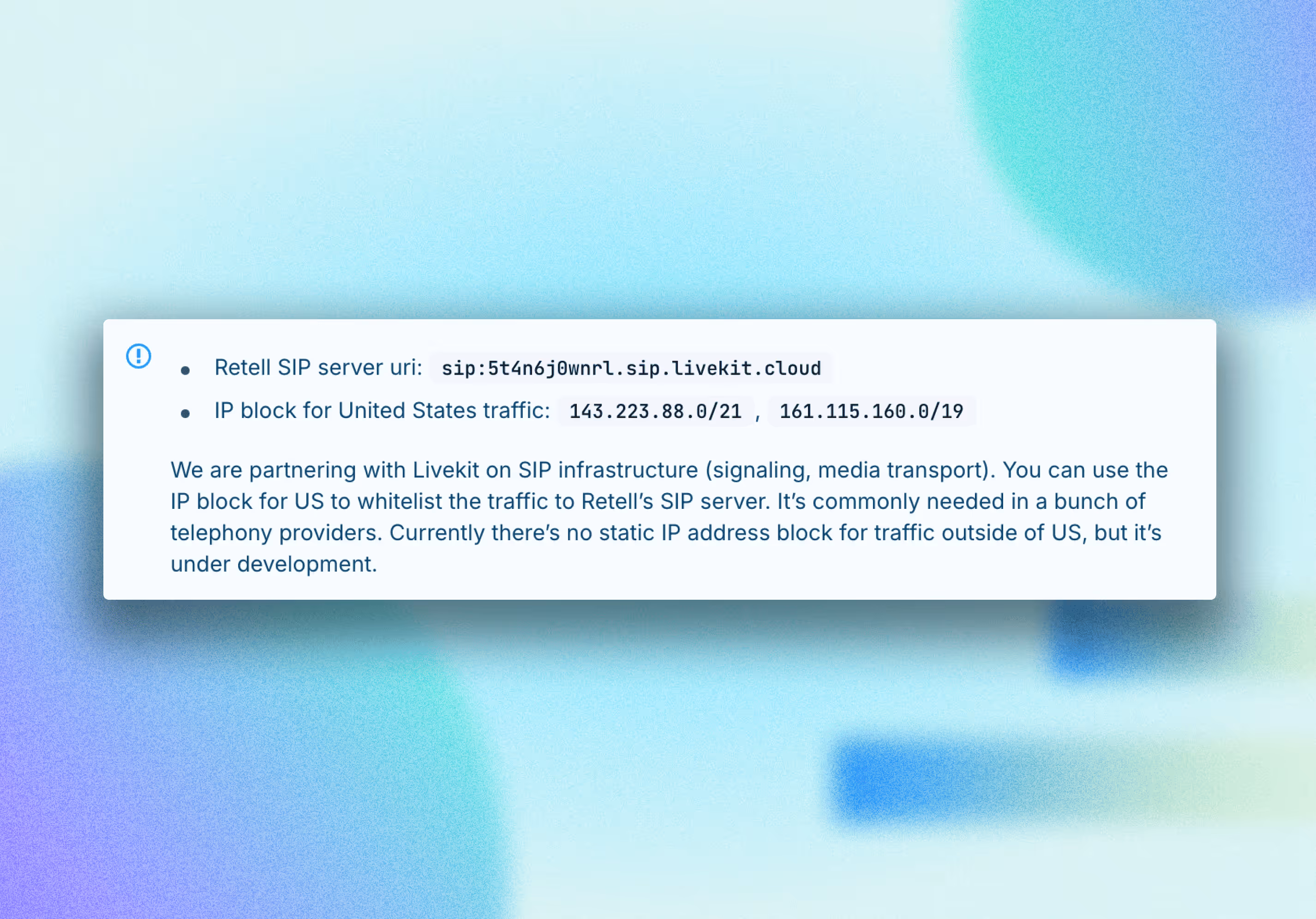 Ensure the authenticity of requests with our new IP verification feature. Authorized Retell server IPs are: 13.248.202.14, 3.33.169.178.