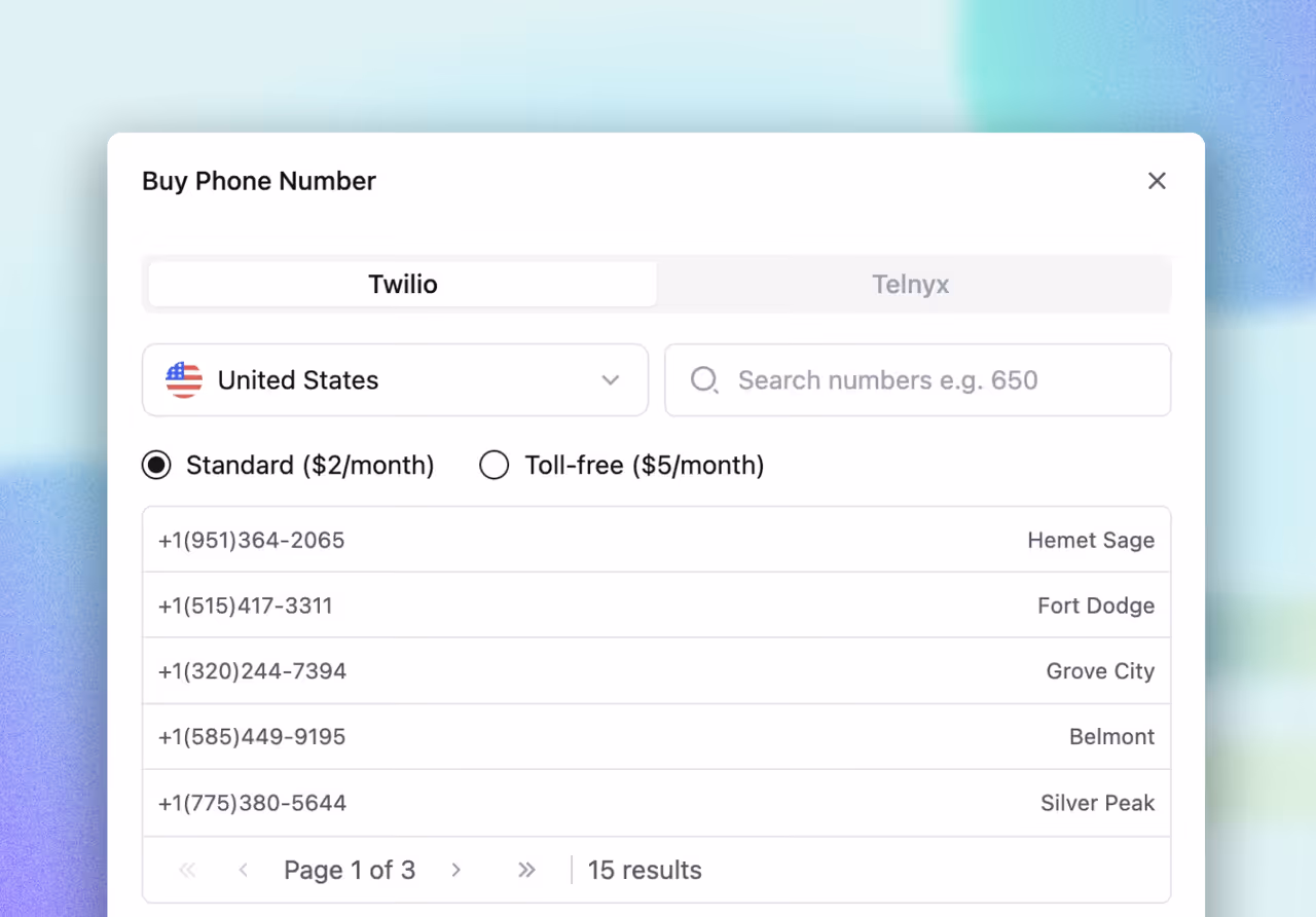 - Retell Twilio ($0.01/min )