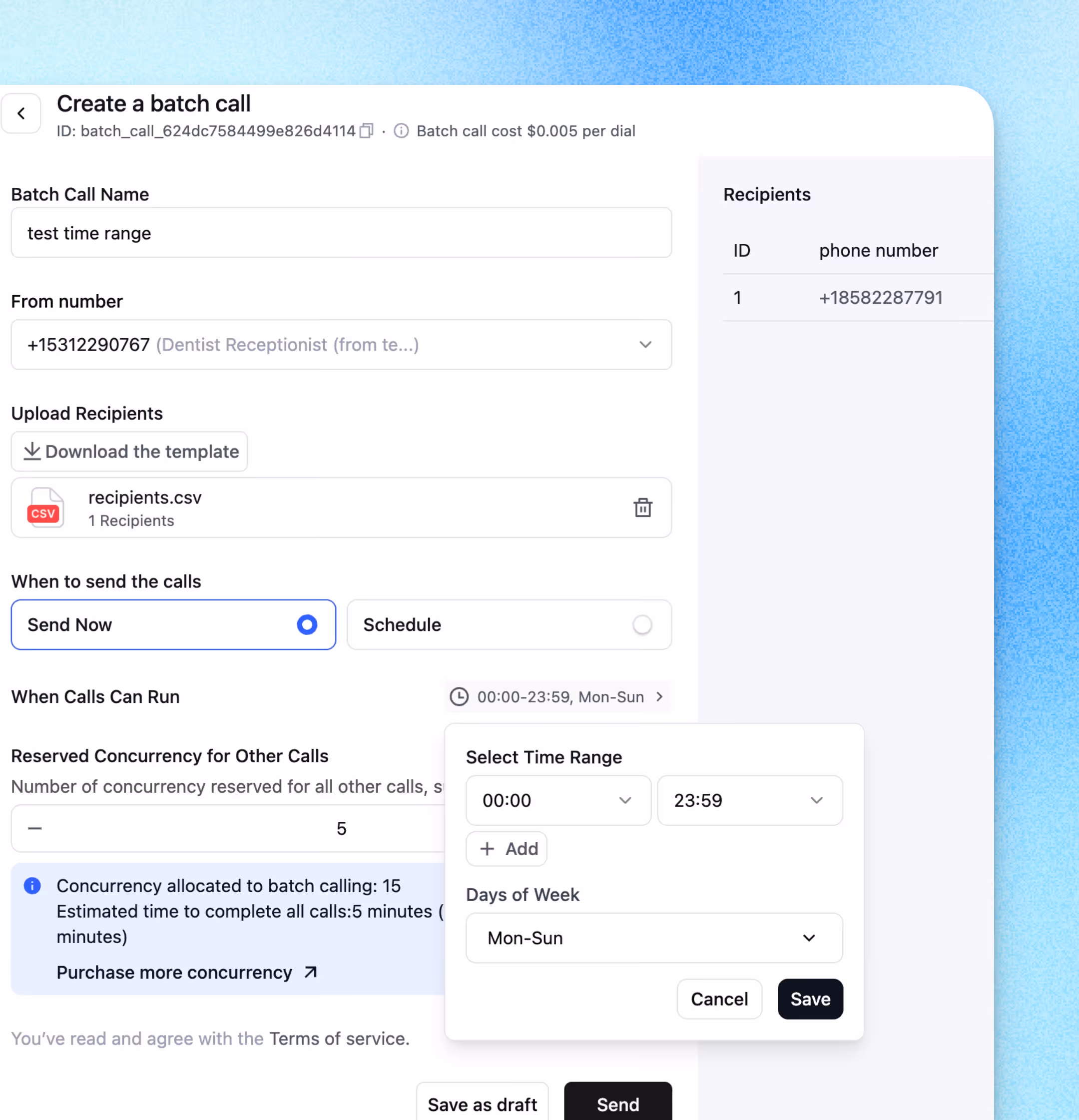 Concurrency Blast — Allows up to the lower of 3x your concurrency limit or 300 additional concurrent calls. $0.1/minute for burst usage.