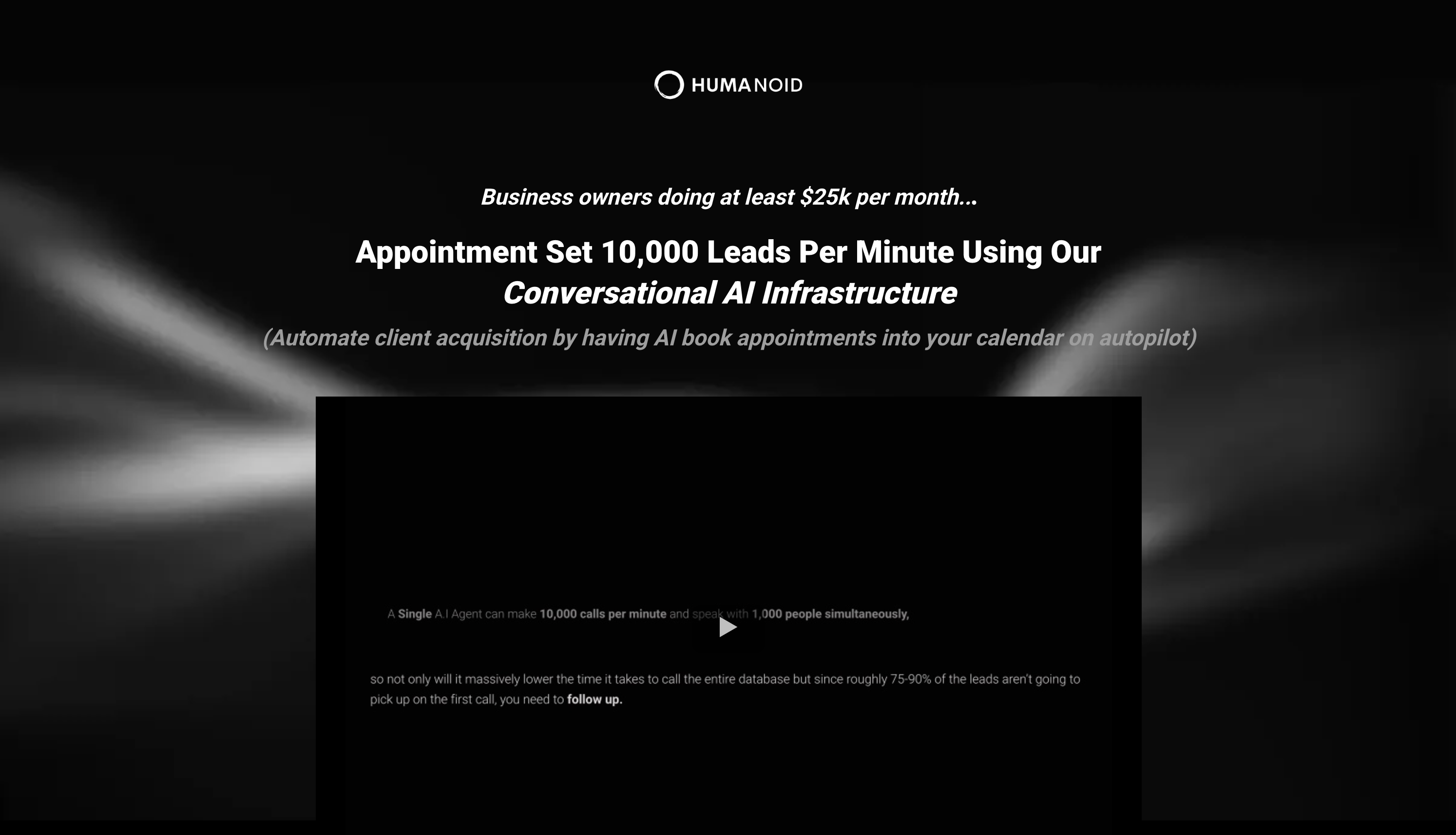 Humanoid AI: Your Business, Automated Transform your business operations with AI agents so human-like, your customers won't know the difference. Our Voice AI Agents and Chat Agents seamlessly handle appointment booking, follow-ups, sales outreach, cold calling, customer support, and FAQ management—all through natural phone conversations and text messaging that sound completely authentic. What makes us different? Our AI doesn't just respond with robotic scripts. It thinks, adapts, and converses like your best employee, building genuine rapport with prospects and customers while you focus on what matters most—growing your business. Beyond AI Agents: Complete Automation Excellence
